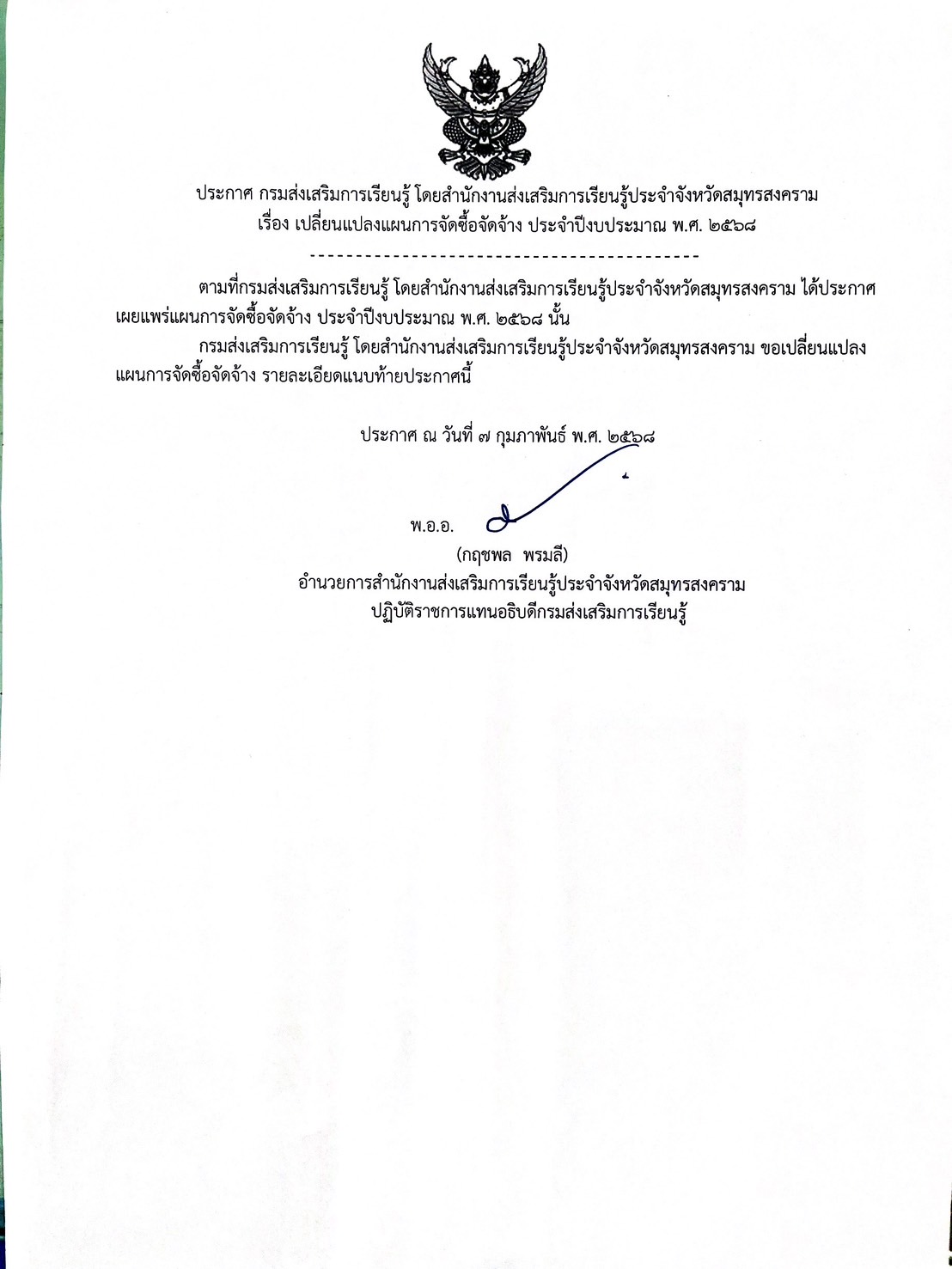 ประกาศสำนักงานส่งเสริมการเรียนรู้ประจำจังหวัดสมุทรสงคราม
